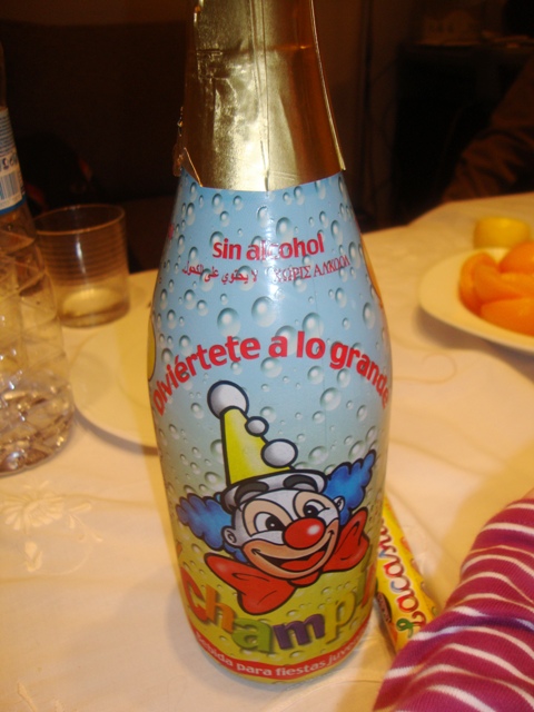 23:25: Hemos comprado a la niña una botella de Champín, para que brinde por primera vez con nosotros por la llegada del nuevo año. Como era de esperar no le gusta y termino bebiéndome yo solito la botella entera.